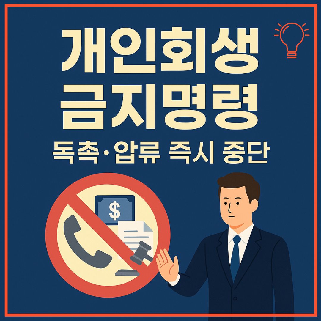 채무조정 가이드 2025개인회생 금지명령 총정리 | 독촉·압류 중단되는 시점과 핵심효력개인회생 절차에서 가장 빠르게 도움이 되는 조치가 바로 ‘금지명령’입니다. 빚 독촉, 전화, 문자, 압류 같은 모든 추심행위를 법원이 즉시 중단시키는 강력한 보호장치입니다.목차개인회생 금지명령이란?금지명령이 내려지면 즉시 중단되는 것금지명령 핵심 요약표금지명령이 꼭 필요한 상황절차 흐름: 신청→금지→개시→인가FAQ정부지원금 & 쿠팡 특가1. 개인회생 금지명령이란?개인회생 신청 직후 법원이 채권자들에게 내리는 긴급보호 조치입니다. 쉽게 말해,"지금부터 채무자에게 독촉·압류·소송을 할 수 없다."라는 명령을 내려, 채무자가 안정적으로 회생 절차를 준비하도록 시간을 확보해 줍니다.2. 금지명령이 내려지면 즉시 중단되는 것2-..