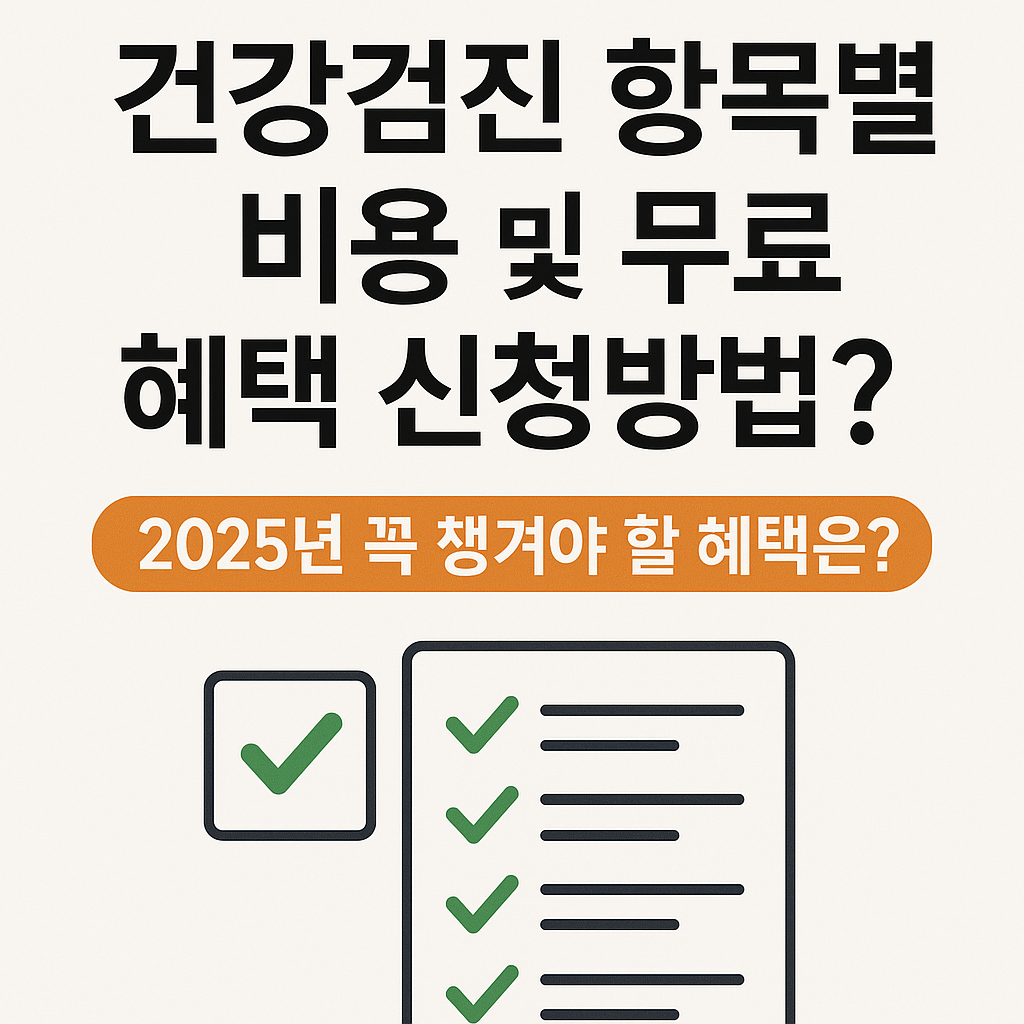 2025년, 국가건강검진 대상자 확대와 함께 많은 분들이 건강검진 무료 혜택을 받고 있다는 사실, 알고 계셨나요?검진 항목별 비용, 무료 항목, 그리고 정부 지원 신청 방법까지 한 번에 정리해드립니다.✅ 국가 건강검진이란?국민건강보험공단에서 20세 이상 성인을 대상으로 실시하는 건강검진 제도로,일정 주기마다 기본 검진을 무료 또는 저렴한 비용으로 받을 수 있도록 돕는 제도입니다.🔹 건강검진 항목별 비용 정리검진 항목일반 비용(자부담)무료 지원 여부기본 건강검진 (혈압, 당뇨, 간기능 등)약 4~5만원무료암 검진 (위암, 대장암, 유방암 등)1~2만원/항목대부분 무료 또는 90% 지원폐암검진 (54~74세 흡연자 대상)약 1만원무료치매 초기검진 (만 66세 이상)약 2~3만원무료골다공증검사 (66세 여성..